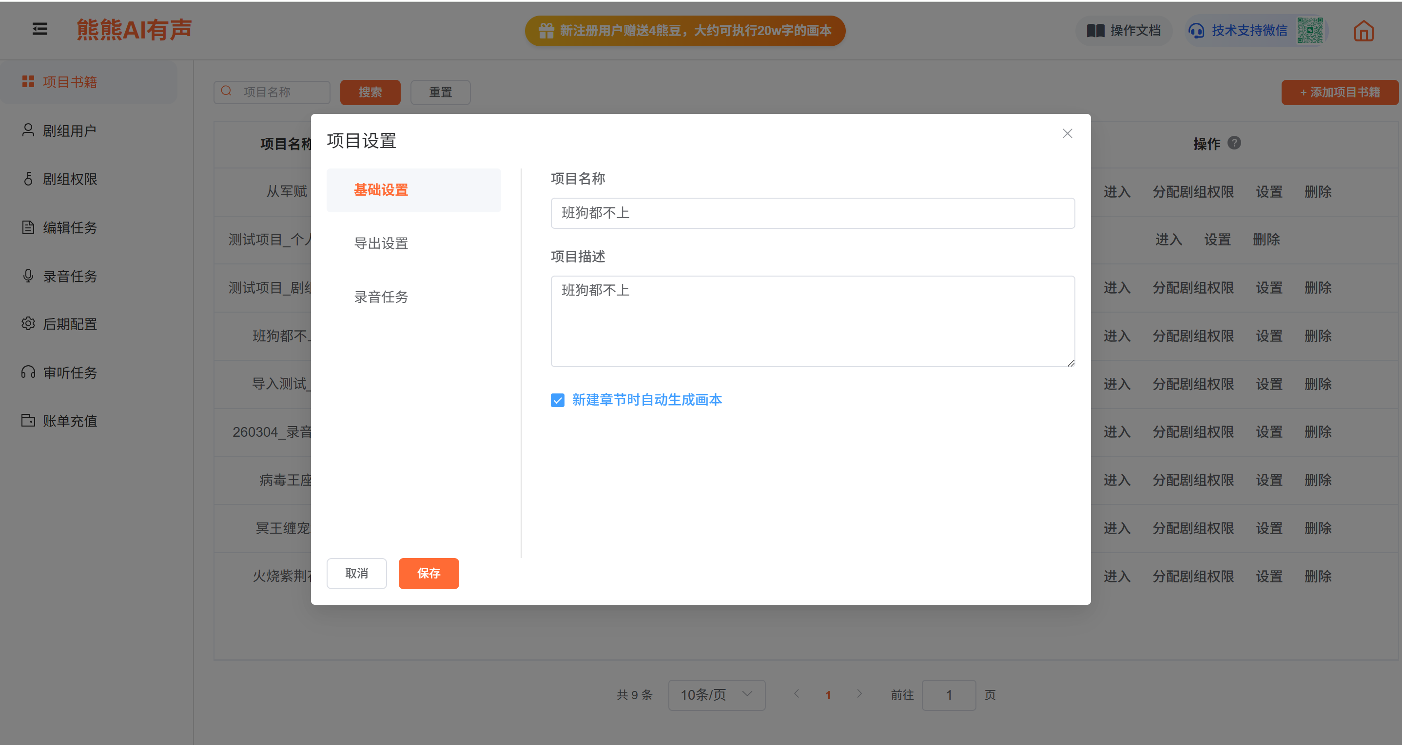 录音权限:则成员可在该成员登录的账号下,录音任务中查看到该项目书籍