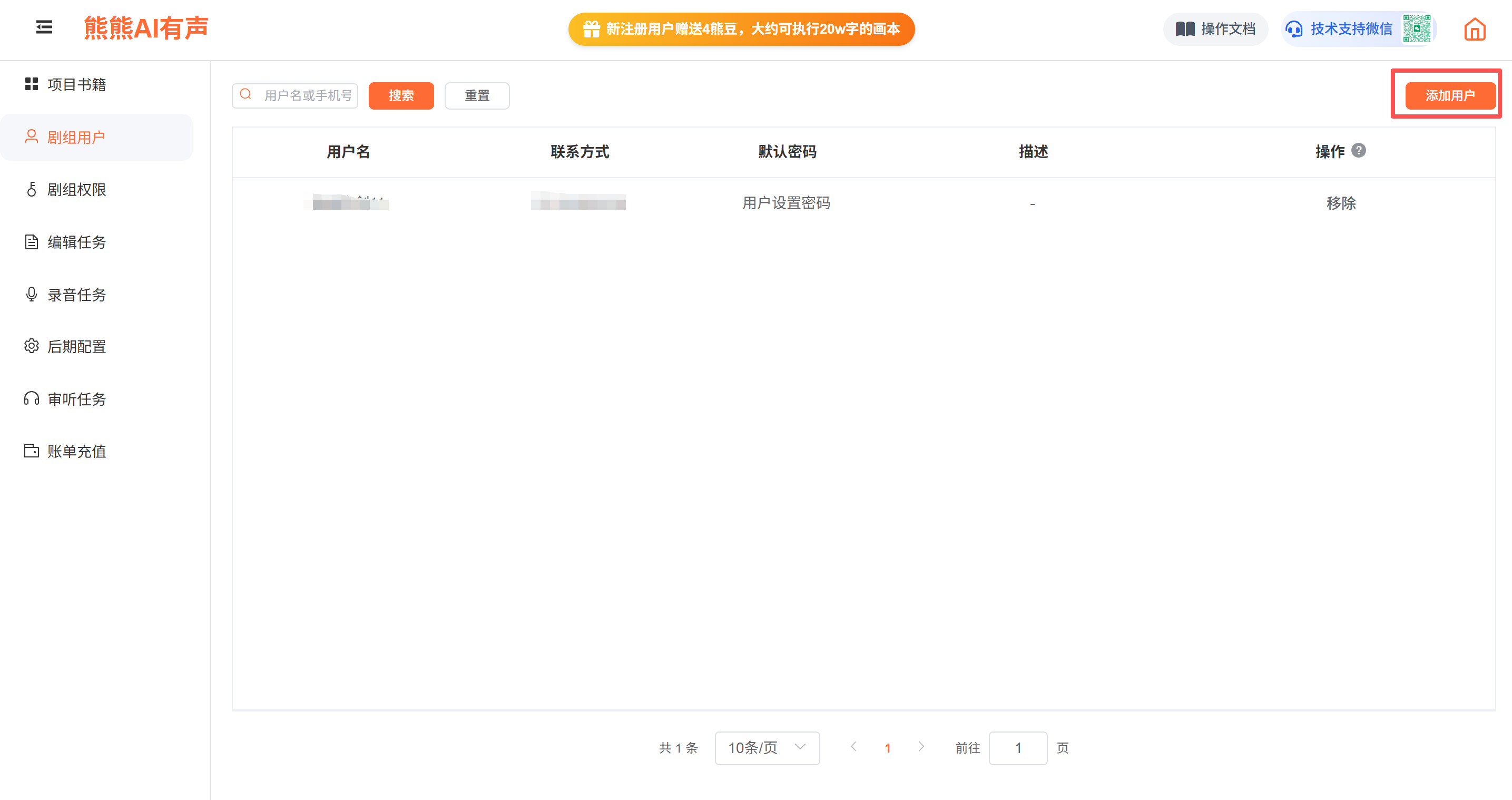 剧组用户:展现当前剧组的所有用户