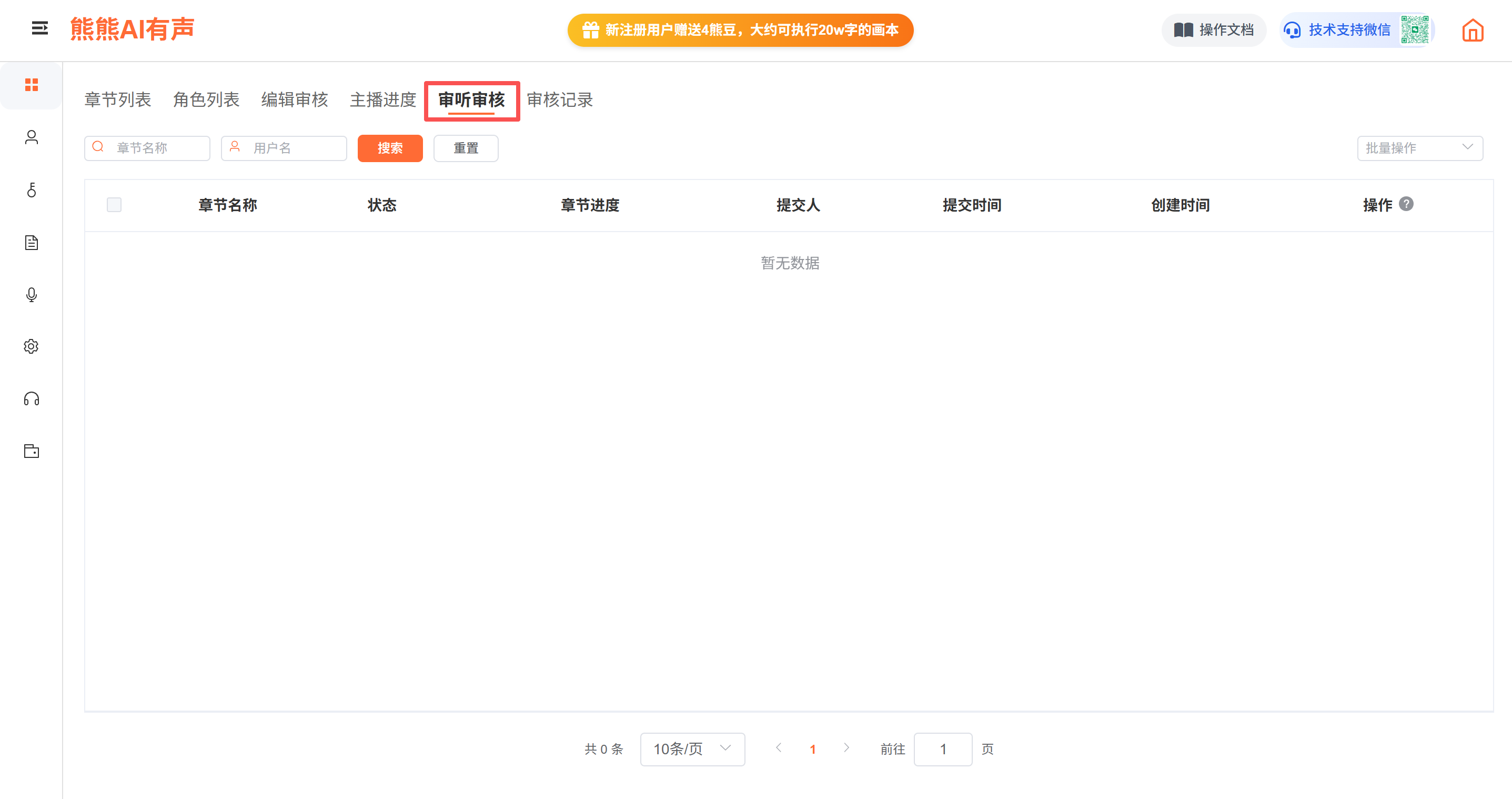 全部配音(AI配音+CV配音)完毕后,该章节会自动发布审听任务,审听人员可以在审听任务中查看该章节,进行审听